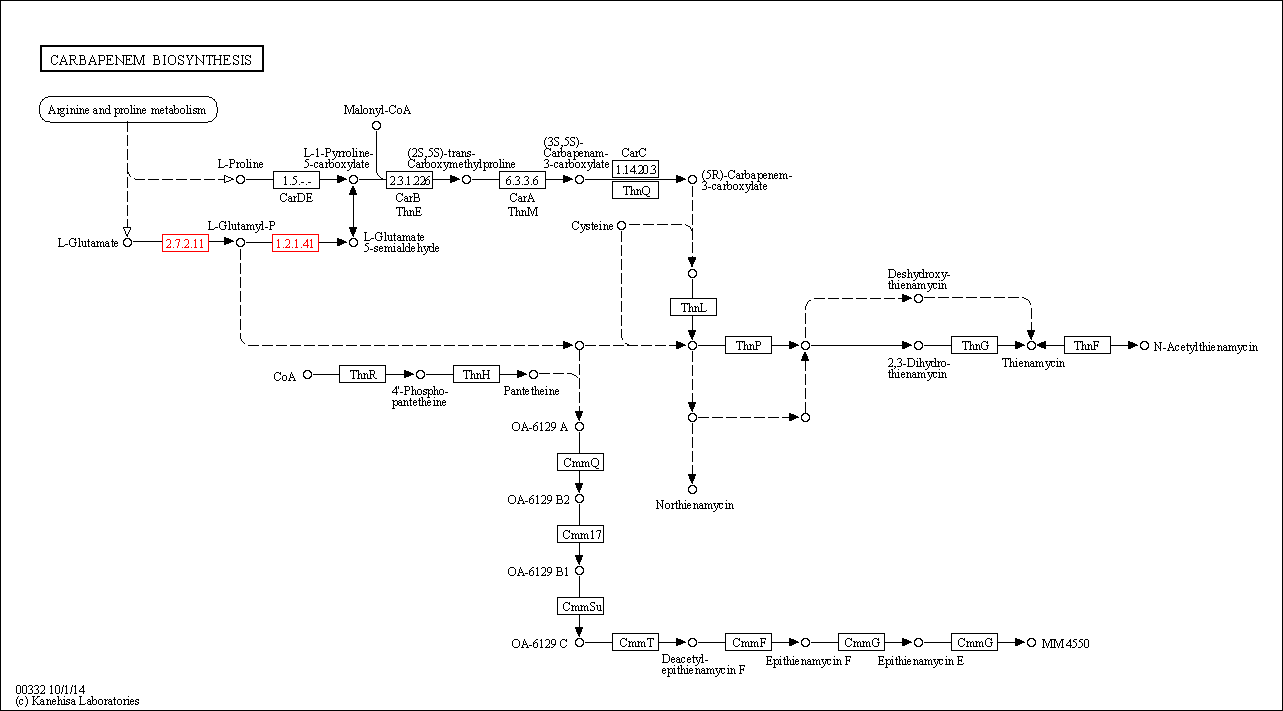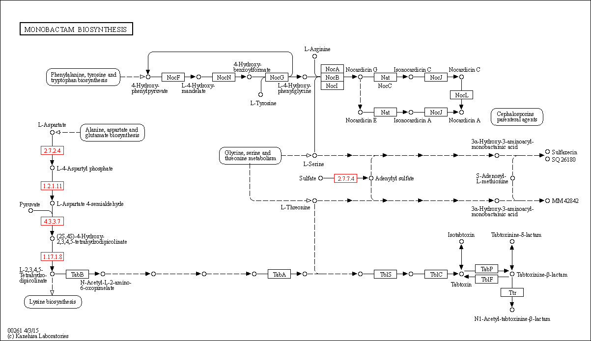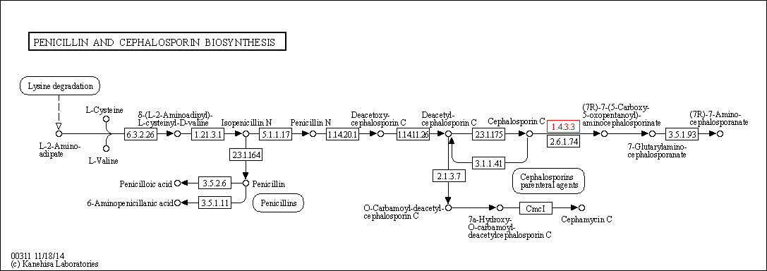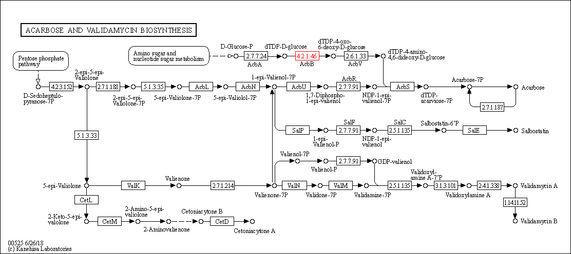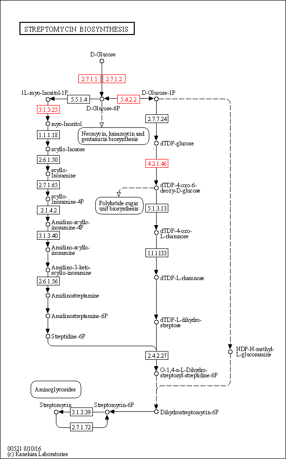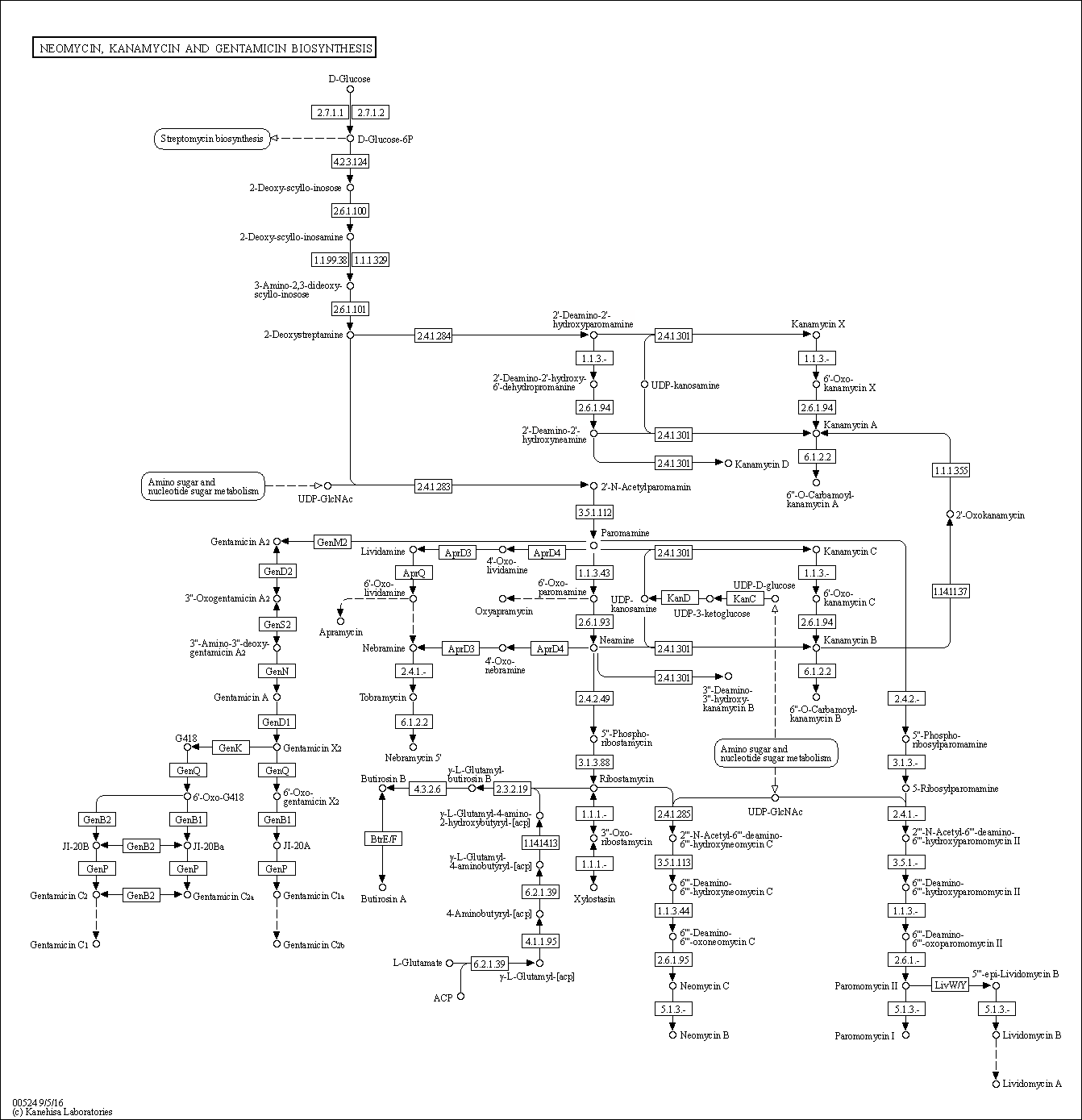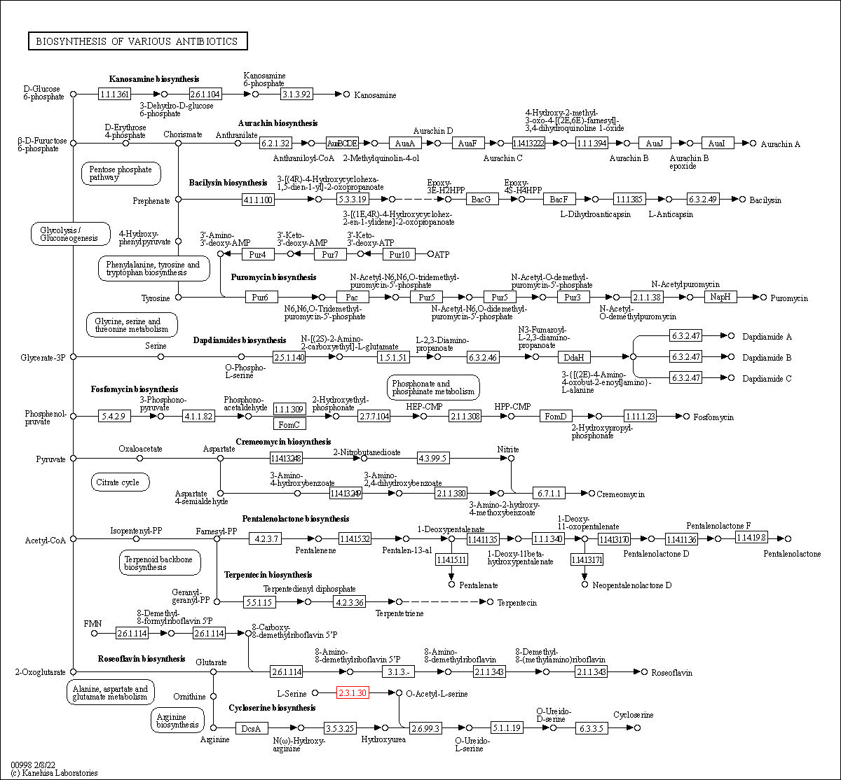 Biosynthesis of various antibiotics; Including: Kanosamine biosynthesis, Aurachin biosynthesis, Bacilysin biosynthesis, Puromycin biosynthesis, Dapdiamides biosynthesis, Fosfomycin biosynthesis, Cremeomycin biosynthesis, Pentalenolactone biosynthesis, Terpentecin biosynthesis, Roseoflavin biosynthesis, Cycloserine biosynthesis |