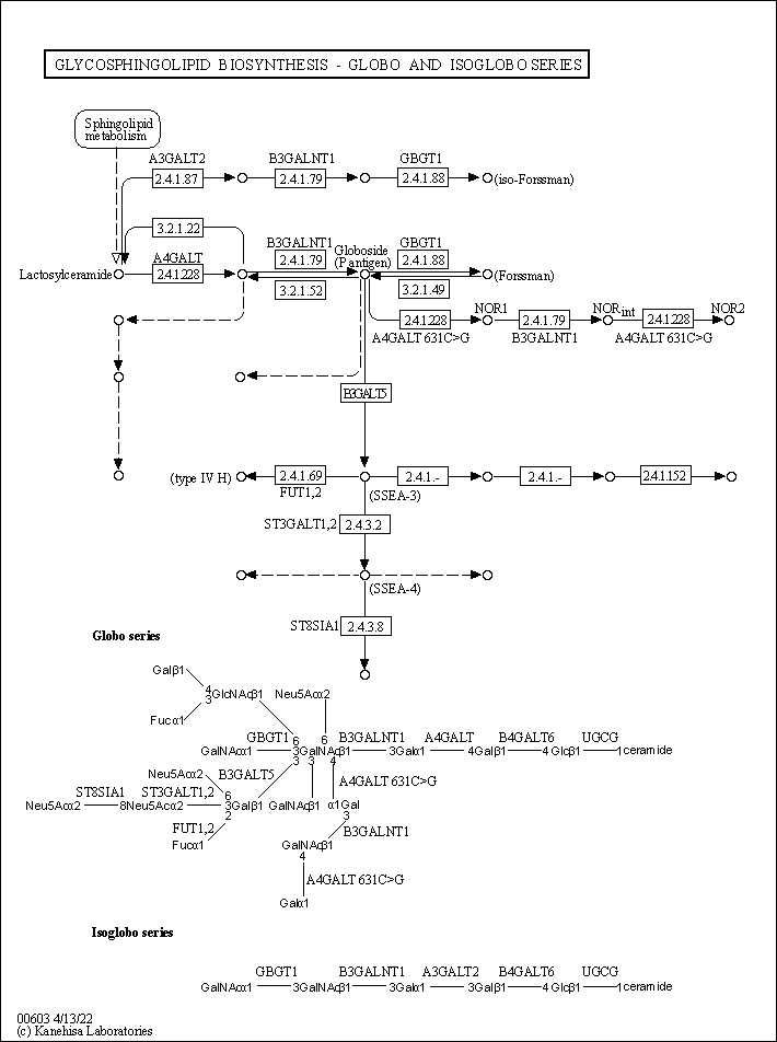 Glycosphingolipid biosynthesis - globo and isoglobo series |